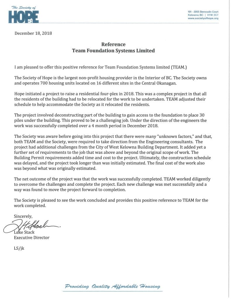 "Team Foundation Systems completed their contracted scope of work on budget and on schedule and left the site clean and clear of any construction debris prior to leaving site. We look forward to working with Team Foundation again in the future."